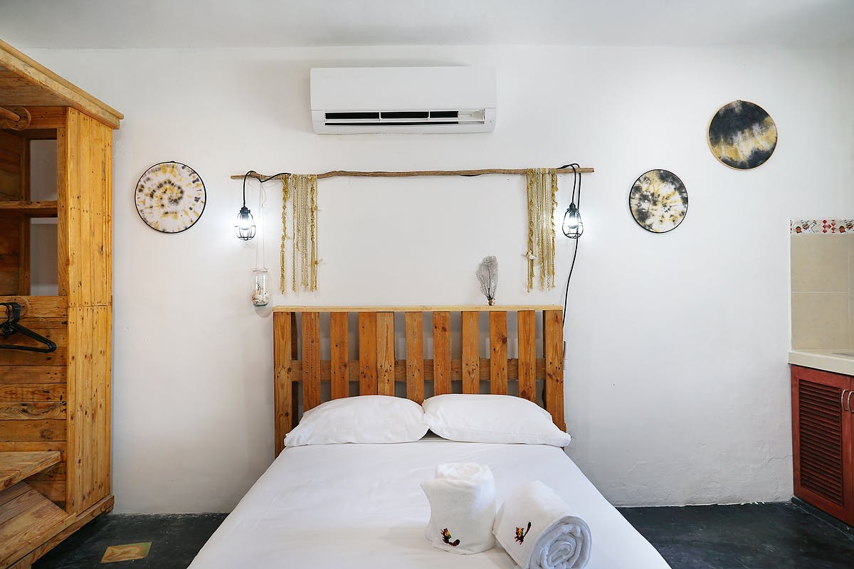 Very comfortable and spacious room. This private room has a double bed with ensuite bathroom, a kettle and fridge to make coffee and store food. Air conditioning and fan to keep you cool on summer nights.